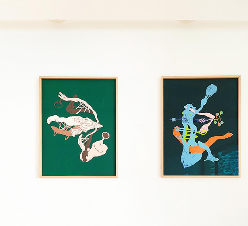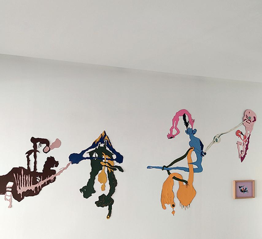 Avec Cornelia Eichhorn, les corps en papier ou en volume ont des allures mutantes et surréalistes… ils se forment, se déforment, s’entrechoquent, se liquéfient et s’évaporent comme des ectoplasmes ou des bulles de savon. L'intrication des corps et des membres… leur interpénétration accentue l'ambiguïté du sujet et cette étrange humanité qui devient viscérale et brutale en son for intérieur. Le papier se découpe comme la chair se transperce… le tout dans une juxtaposition d'aplats de couleurs… comme des corps étrangers. Il y a une forme d’aléa biologique… microscopique et gigantesque… d’interdépendance de chaque élément comme dans une société humaine… hybride… entre articulation et désarticulation.