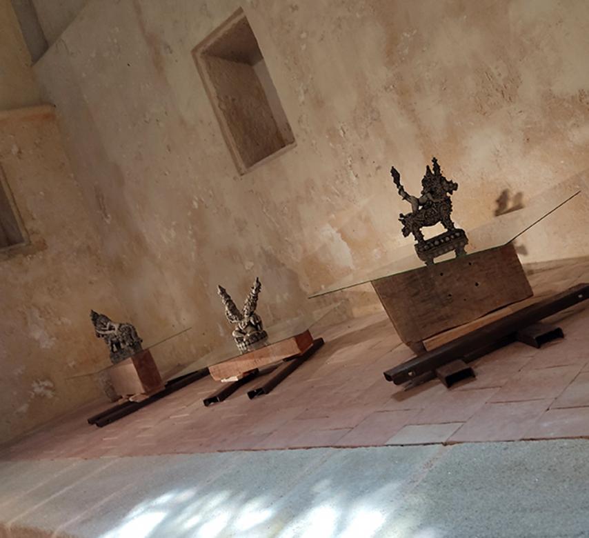 Quant à Federica de Ruvo, le foisonnement sensuel et narratif de ses sculptures tient à une forme de mythologie universelle. Hymne à l’Amour et à la vie, elle mêle l’humain au règne végétal et animal. Mère-nature, déesse ou Amazone… elle joue sur la figure et l’iconographie féminine… à la fois contemporaine et historique… fragile et solide. Entre la relique et l’offrande, elle transforme le visiteur en aventurier… un Indiana Jones explorant les ruines d’un temple d’une culture oubliée… peut-être même disparue… dont on imagine les coutumes et les rites sacrés. Elle illustre cette étrange familiarité… cette sensation de bien connaître ce qui nous est pourtant encore inconnu.