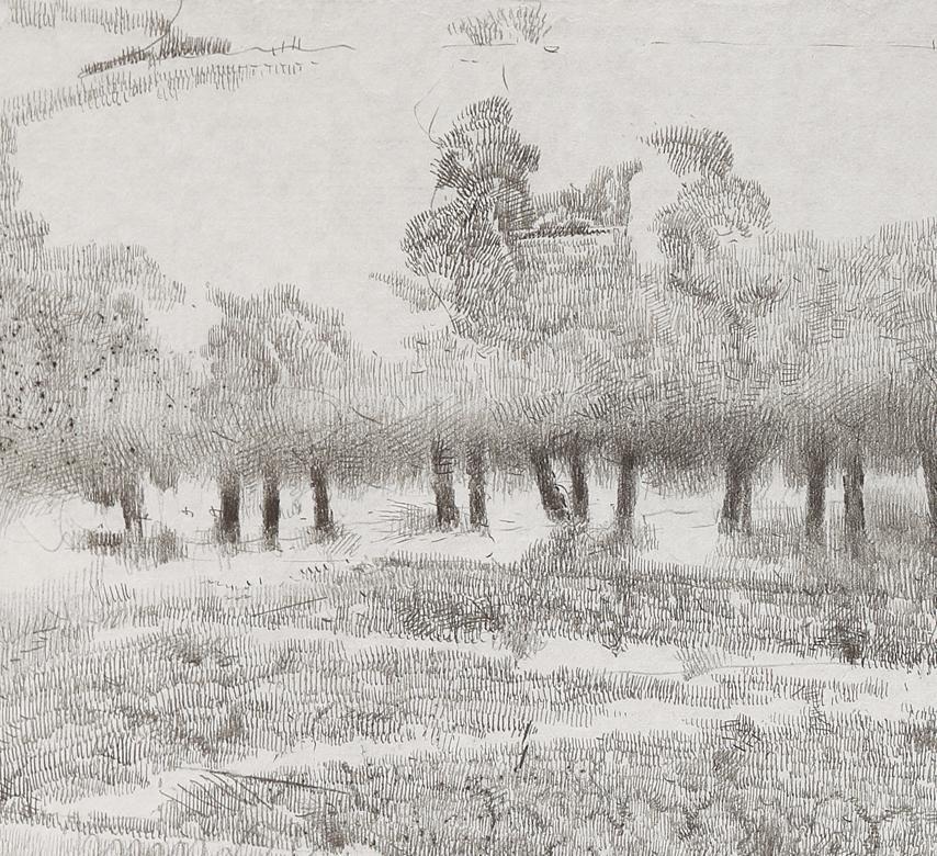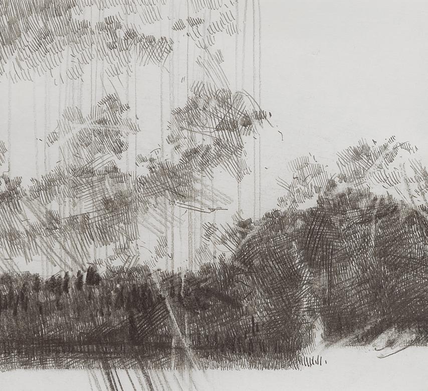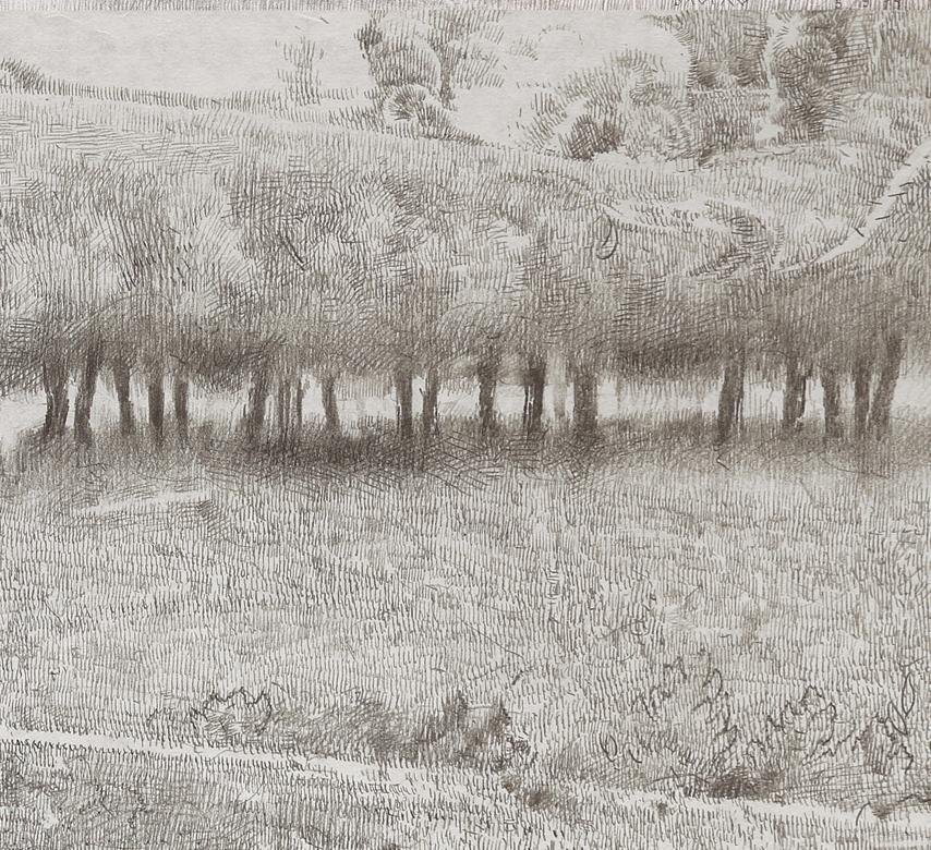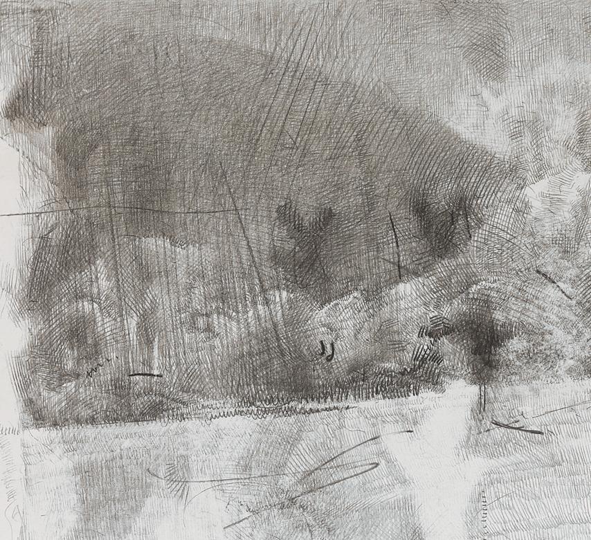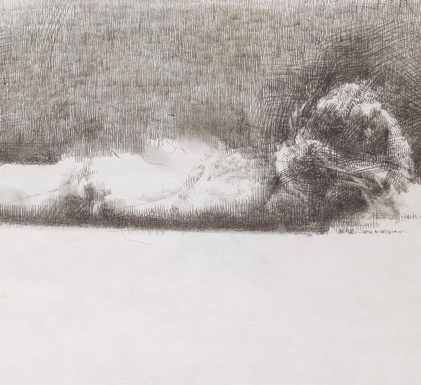 Quelques lignes, une masse végétale, un halo de lumière. Au départ, rien de précis, rien qui puisse être nommé. Des détails surgissent. Une sorte de bosquet né de lignes entrelacées.Détails insignifiants faisant néanmoins signe.Obscures clartés, empreintes diaphanes.Sensations de nature.Spectres de lieux.Presque rien.