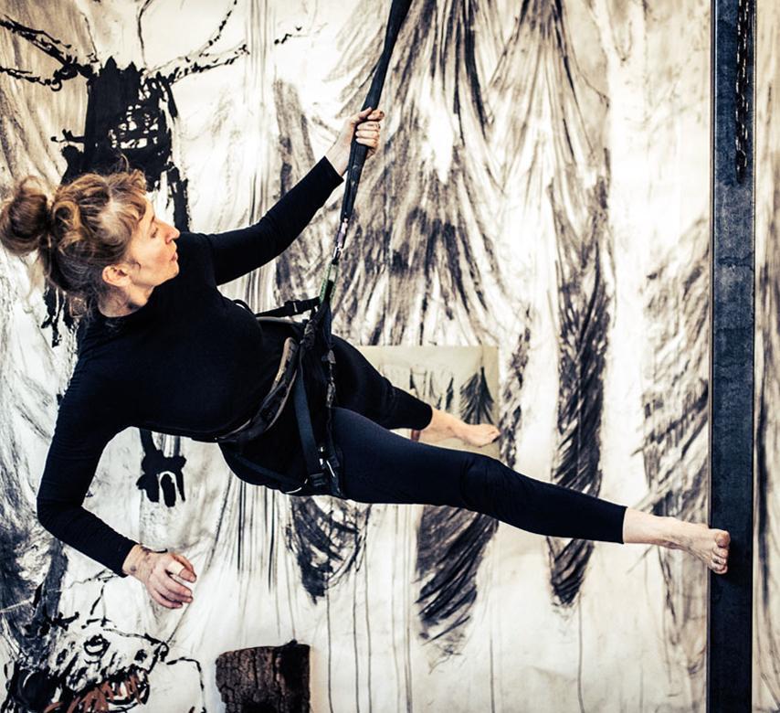 Sandra Ancelot  m'a poussé  dans ce sens et convaincu de faire quelque chose de spécial. Elle- même, est dans une direction de recherche, sur un travail de dessin aérien, quelque chose à la frontière des disciplines, entre les arts plastiques et l'action, la proposition finie, ou la pièce en construction: est-ce du dessin, est-ce de la performance, est-ce du cirque, du spectacle ?
