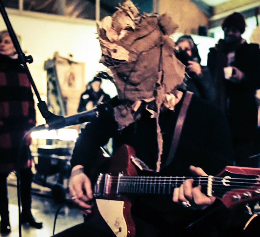 Car loin d’une exposition thématique (le sauvage, l’animalité), ou même d’une mise en commun d’éléments préconçus qui aboutiraient à une installation collective, c’est bien un processus de création « décolliérisé » qui devait faire œuvre. « La Louve » a été une tentative de communauté en action, de pertes de repères individuels pour partir à l’aventure, une performance en soi, qui pouvait aussi échouer. Ressentir, s’éprouver, se renifler… Les masques animistes, les animaux empaillés, l’enseigne lumineuse à la lumière verdâtre ou les néons « Walk on the wild side » traversant un mur de briques, les dessins au fusain recouverts d’autres dessins à l’encre noire, de forêt et d’hommes animaux, la vidéo-performance d’un épouvantail brûlé, les flèches en acier et pattes de chevreuil, les photographies des artistes nus lors du montage de l’exposition, puis de leurs performances après le vernissage, la guitare électrique et ses vieux amplis, la potence à chaîne, la louve en argile, la photographie d’une constellation d’une « grande louve » fantasmée… Les éléments se bousculent et s’assemblent pour tenter d’exprimer l’énergie d’une esthétique sauvage, c’est-à-dire intuitive et sexuelle, dans une mise en espace libre et ordonnée, encore trop civilisée finalement, peut-être, selon les artistes eux-mêmes.